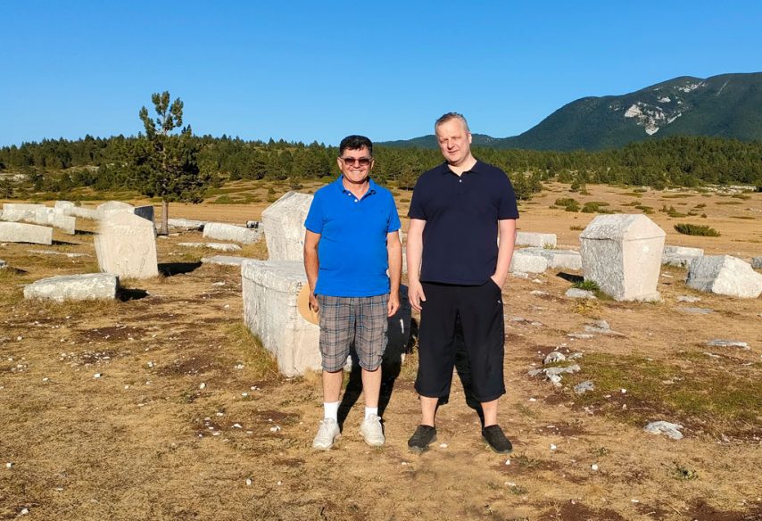 Idem napraviti zadnju fotografiju, te vidim automobil zagrebačkih registracijskih tablica. Osoba sa sunčanim naočalima stiže na nekropolu. Učtivo se pozdravimo i razmijenimo par riječi. Pitamo jedan drugog za prezime koje u ovom kraju znači sve. Po njemu se prepoznajemo. U momentu shvatimo da nismo stranci jedan drugom. Nećete vjerovati, na nekropoli sam sreo hrvatskog odvjetnika i jednog od autora na portalu Logično, Matu Knezovića. Ispričasmo se, ismijasmo se i pozdravismo se. Svijet je mali.