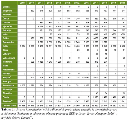 „Na taj je način Hrvatska premašila ciljeve strategije Europa 2020. (Bruxelles, 14.10.2020. COM(2020) 952 final) koji se odnose na udio energije iz obnovljivih izvora postavljene za 2020.“