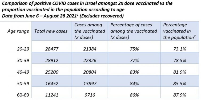 Novi podaci iz Izraela potvrđuju da se četiri mjeseca nakon masovnog cijepljenja cijepljena javnost uspijeva zaraziti COVID-om približno istom brzinom kao i necijepljena.