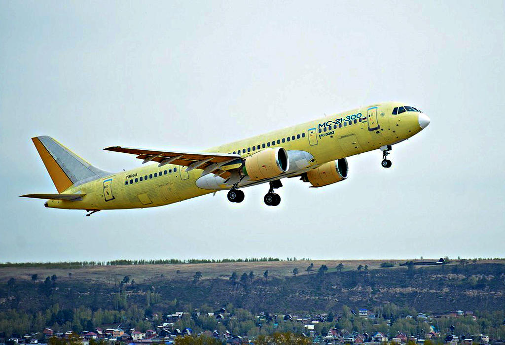 Prototip je u varijanti MC-21-310 i poletio je iz zrakoplovne tvornice u Irkutsku, opremljen mlaznim motorima PD-14 proizvođača Aviadvigatel