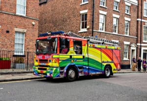 Šarene boje odobrilo je nekoliko šefova vatrogasnih i spasilačkih službi diljem Engleske od 2017. u akcijama inkluzivnosti i akcijama zapošljavanja.