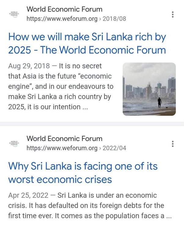 Pogledajte objavu iz 2018 i zatim objavu iz 2022 koja kaže da Šri Lanka ulazi u najveću krizu u povijesti: