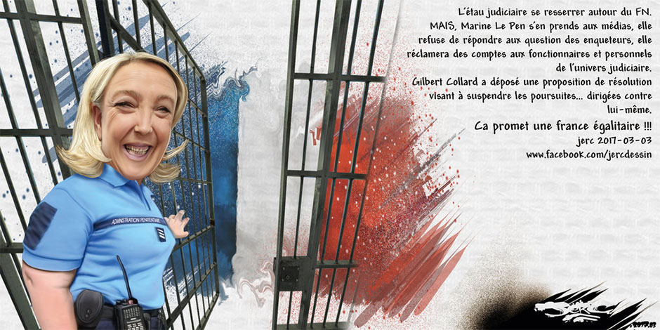 Trenutno je internet na Zapadu počeo blokirati sve pozitivne publikacije o Marine Le Pen. Na drugoj strani je pokrenuta agresivna kampanja u narušavanju imidža čelnice Nacionalnog fronta, objavljujući opscene i uvredljive karikature u stilu časopisa Charlie Hebdo.