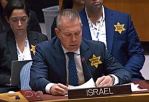 Izraelski veleposlanik u Ujedinjenim narodima (UN) Gilad Erdan rekao je da će on i njegov tim nositi žute zvijezde na sjednicama Vijeća sigurnosti sve dok ono ne osudi zločine koje je Hamas počinio 07. listopada, nakon čega je optužio međunarodnu tijelo zbog ne djelovanja zbog napada na židovsku državu. “Neki od vas nisu naučili ništa u proteklih 80 godina”, rekao je Erdan u strastvenom govoru vijeću u ponedjeljak, dok je nosio žutu zvijezdu na kojoj je pisalo ‘nikada više’.