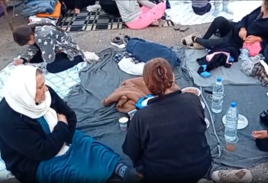 Snimke prikazuju kako su se raseljene osobe, uključujući žene i djecu, sklonile unutar objekata i na otvorenim prostorima baze.
