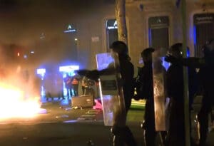 Dok je u srijedu nad Barselonom padala noć, gomila demonstranata kotrljala je improvizovane barikade niz centralnu ulicu Via Laietana, prije nego što su ih zapalili. Zvuk razbijanja stakla mogao se čuti u video zapisima koje su snimili posmatrači, zajedno sa pucanjem policijskog oružja u obližnjim ulicama.