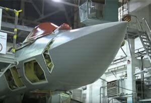 Video sadrži i niz drugih Su-57 na montažnoj liniji. Svi avioni, osim prvog, nemaju kamuflažu, a trup je pokriven samo osnovnim premazom.