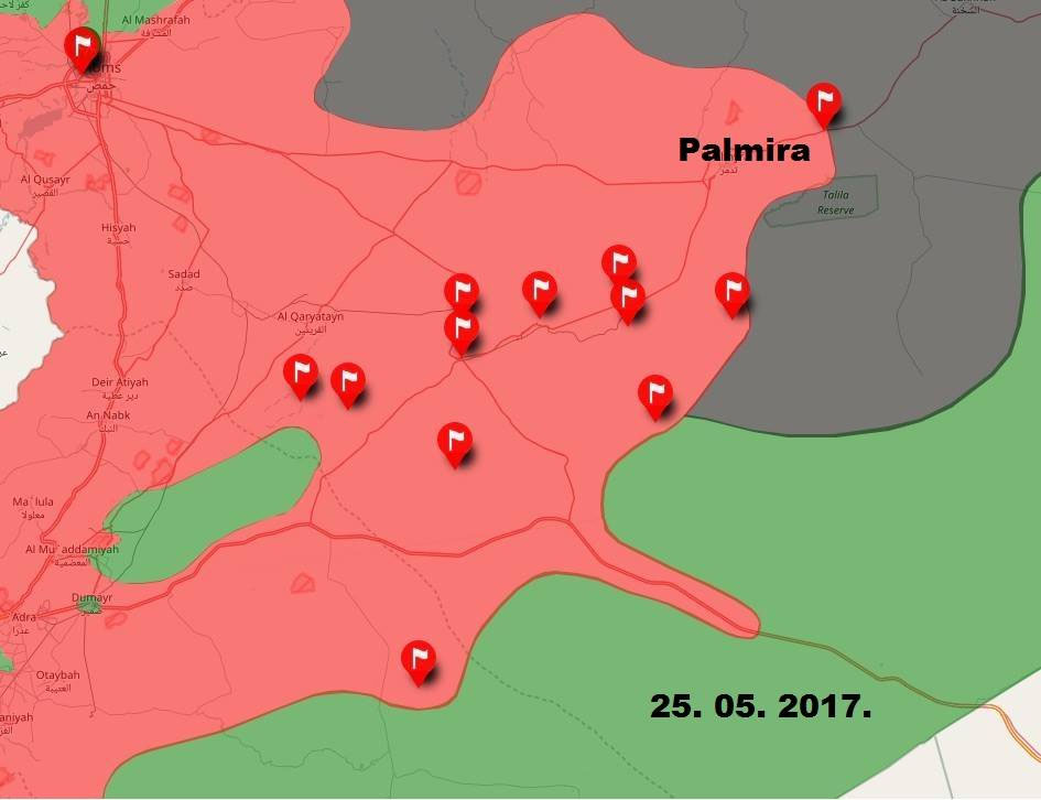 FOTO – Područja oslobođena u samo 48 sati ofenzive u istočnom Qalamounu i južno od Palmire.