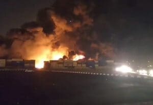 Drugi snimci objavljeni na internetu pokazali su gusti dim koji se diže iznad lučkog područja, dok su vlasti evakuirale obližnja naselja i privremeno obustavile lučke operacije.