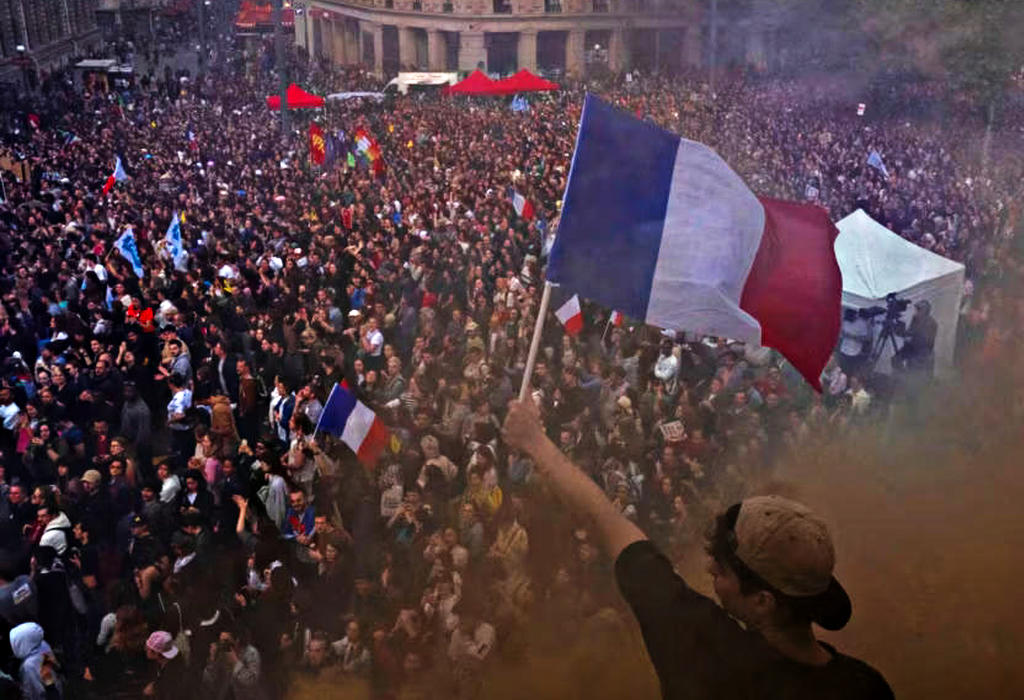 Nedugo nakon što su preliminarni rezultati objavljeni u nedjelju navečer, neredi su izbili na skupu Nove Narodne Fronte u centru Pariza, a Nantes, Lyon, Marseille i Rennes ubrzo su se pridružili.