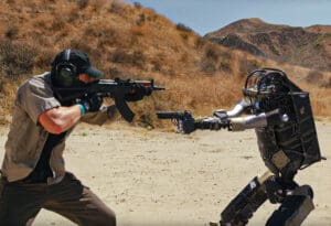 Ništa od toga.. Jerry Miculek bi ga sredio ako ne sa MEP 91 onda sa svojim Mossberg-om JM930prp.. A robotima kad software otkaže, puca gdje stigne. Iako nije loše uopće 🙂