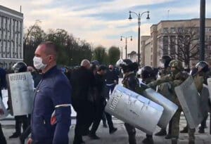 Grupa demonstranata zanemarila je fizičku distancu i opkolila kancelariju lokalne vlasti u Vladikavkazu na jugu Rusije. Zahtijevali su da se ukine koronavirusni karantin te se sukobili sa policijom.