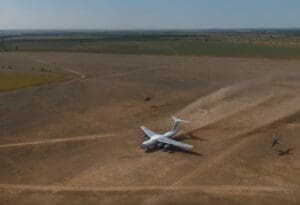 Ruska grdosija Il-76MD slijeće na travnatu pistu