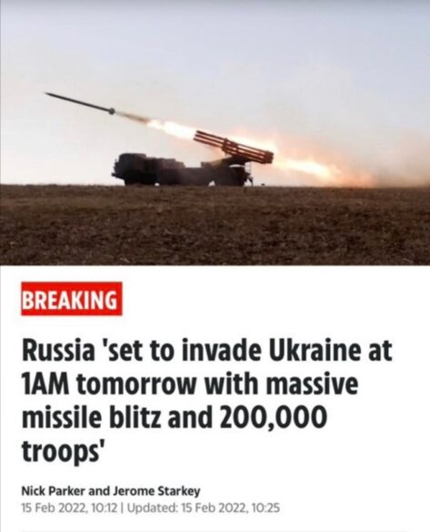 Maria Zaharova je na svom telegram kanalu napisala: “Zahtjev američkim i britanskim dezinformacijskim medijima: Bloomberg, The New York Times, The Sun, itd. – objavite raspored naših ‘invazija’ za narednu godinu, željela bih planirati godišnji odmor” To je uslijedilo nakon što su određene britanske novine poput The Suna i The Mirrora objavile da se ”invazija na Ukrajinu” trebala dogoditi 16. veljače u 3:00 ujutro, pozivajući se na podatke američkih obavještajnih službi. Bloomberg je ranije izvijestio 4. veljače s naslovom “Rusija napada Ukrajinu” zbog čega se morao ispričati izjavom o pogrešci u objavljivanju.