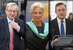 Jean-Claude Juncker (Europska komisija), Christine Lagarde (MMF) i Mario Draghi (ESB) imaju milijunske plaće, bonuse bez presedana, luksuzne naknade i zajamčene mirovine kada napuste ured.