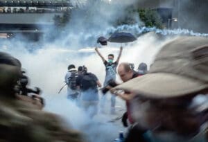 Prosvjedi u ovom gradu započeli su krajem ožujka zbog prijedloga zakona kojim se omogućuje izručenje osumnjičenika na kinesko kopno. Iako su vlasti odustale od prijedloga zakona, demonstranti su postavili dodatne zahtjeve, izrađujući zastave SAD-a i Velike Britanije i sukobljavajući se s policijom.