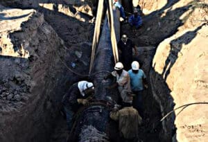 Nekoliko fotografija koje kruže internetom pokazuju veliki krater i ekipe za popravke koje rade na popravci oštećene cijevi.