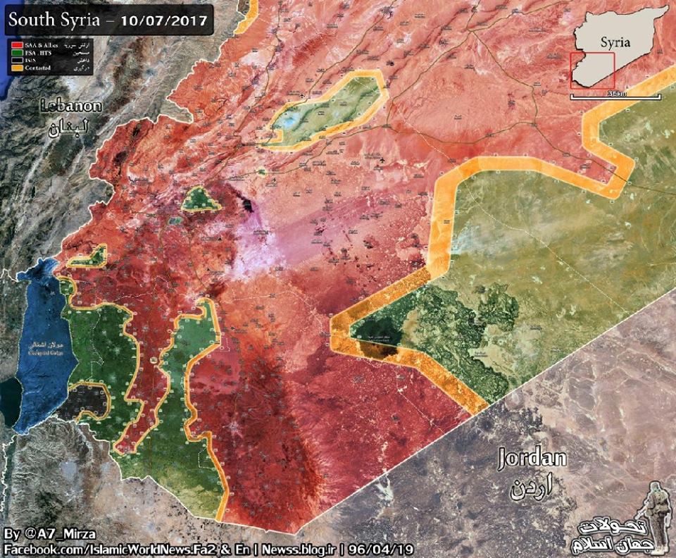 Iako je na području Dara’ae, Quneitre i zapadne Sweide na snazi američko-ruski sporazum o prekidu vatre, središnji i istočni dijelovi zemlje su isključeni iz sporazuma i stoga su legitiman cilj sirijske vojske i saveznika.