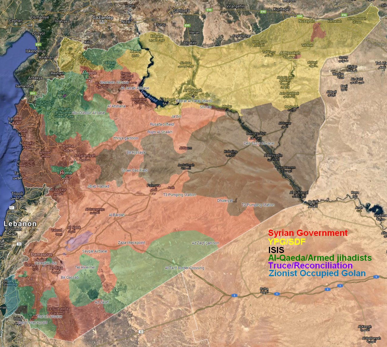 dobro ide samo je zute boje i zelene previse na mapi snjima ce ici malo teze . dali je podjela vec dogovorena nedostatak ljudstva je ogroman problem sirijska vojska se razvlaci po velikoj teritoriji samo da ne bude neki blic krik zeleni zuti i nato pakta