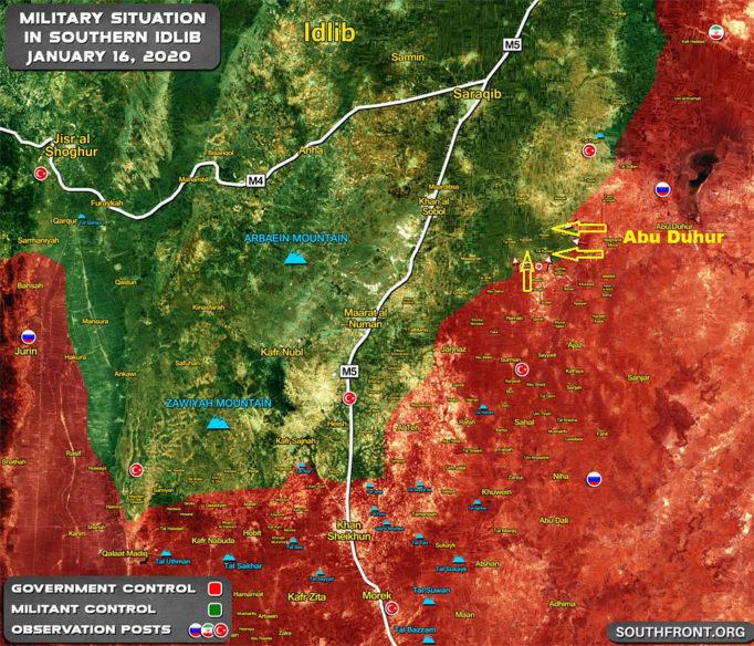 Jutros je sirijska vojska nastavila kampanju „Zora Idliba“ u području jugozapadno od grada i vojne zrakoplovne baze u Abu Duhuru. U prvim satima operacije su oslobođena sela