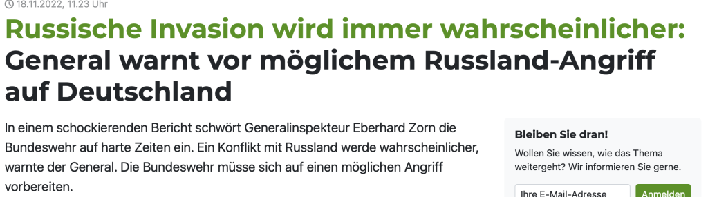 Sredinom studenog 2022. Der Spiegel je objavio dokument njemačkog Ministarstva obrane koji je procurio [68 stranica], otkrivajući da se Bundeswehr priprema za rat s Rusijom.