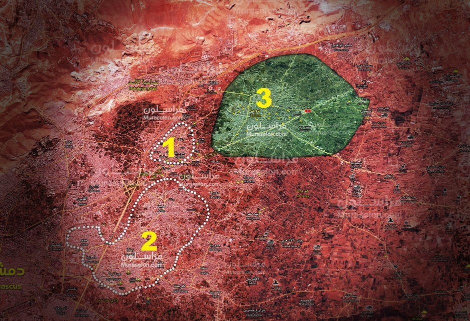 FOTO – Područje Istočne Goute / Harasta (1), Jobar, Zamalka, Ain Tarma i Arbin (2) i Douma (3)