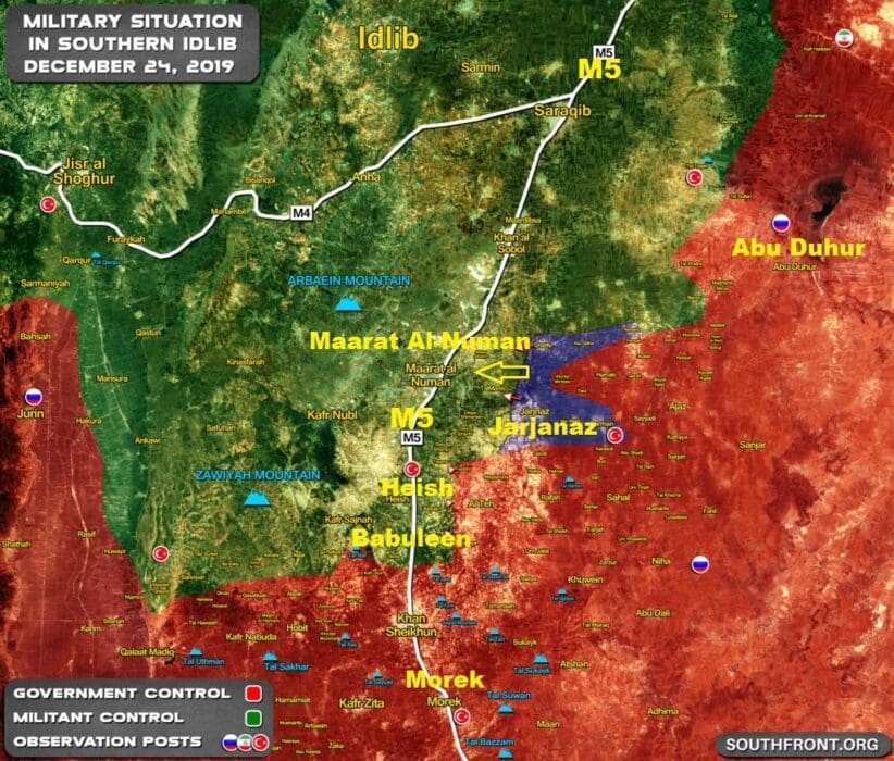 Jučer, na sam Božić, kojeg slavi i Sirija, nije bilo većih pokreta na osi iz Jarjanaza prema Maarat Al-Numanu, ali su vladine snage zauzele dva mosta na autoputu Hama-Aleppo, mostove Babuleen i Heish, desetak kilometara južno od Maarata Al-Numana.