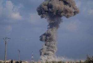 Zbog velikog broja zračnih udara su teroristički zapovjednici naredili da se posvuda pale gume i crnim dimom stvaraju “dimne zavjese”. Na objavljenim fotografijama se vide djeca kako pale otpad i gume, nakon čega je cijeli grad prekrio gusti crni dim.
