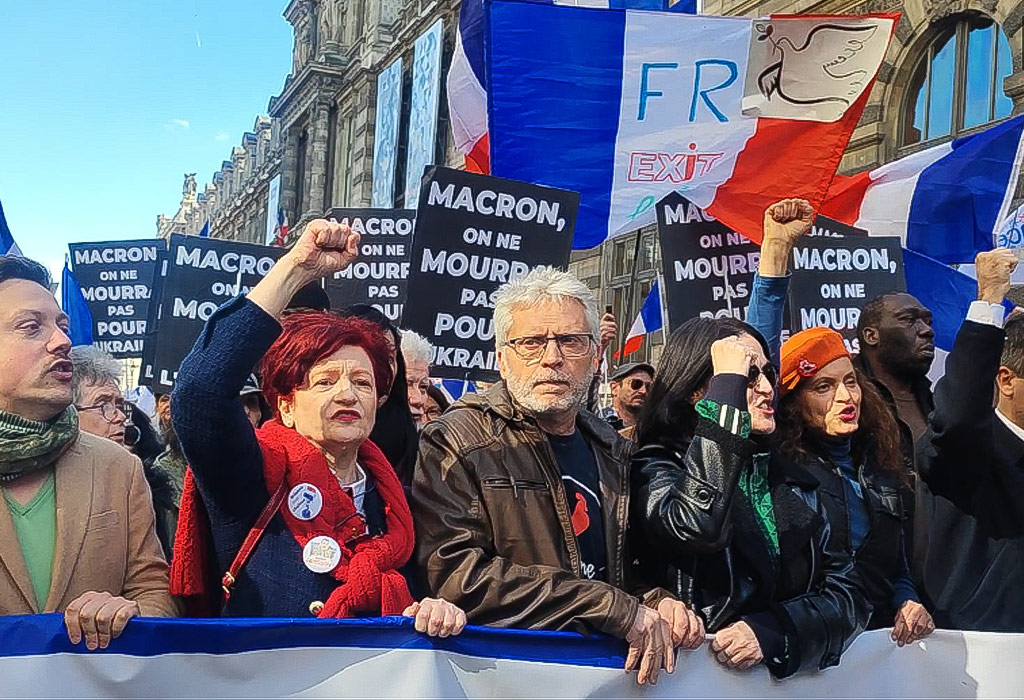Tisuće demonstranta marširale su ulicama Pariza u subotu, protestirajući protiv militarističkog pristupa francuskog predsjednika Emmanuela Macrona i NATO-a u ukrajinskom sukobu.