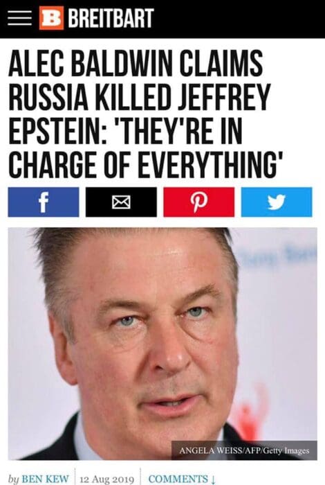 Breitbart / Alec Baldwin: Russia killed Epstein