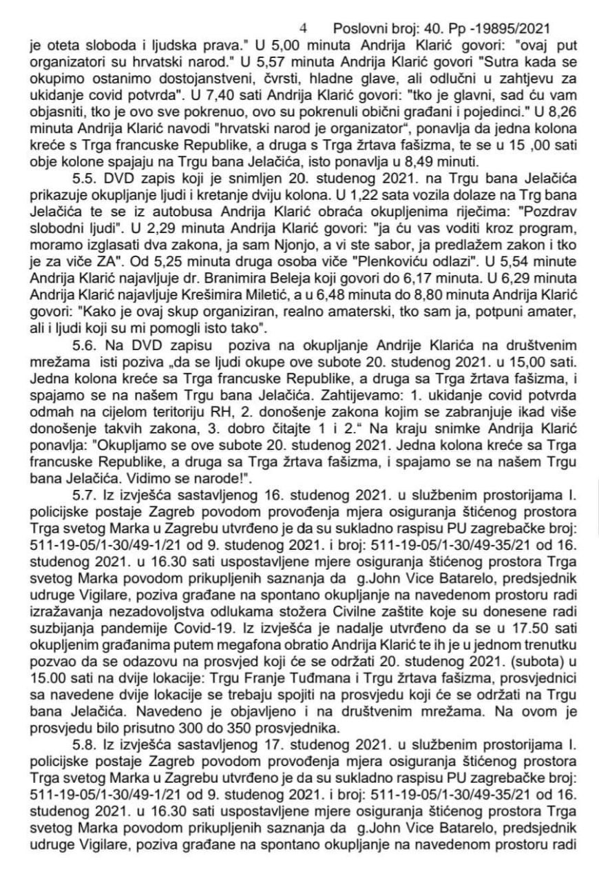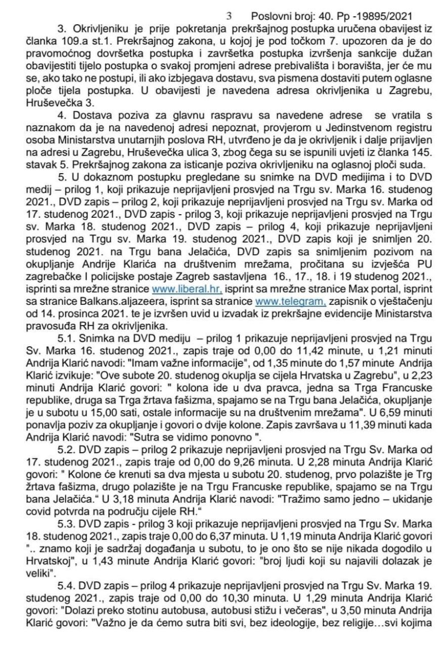 Hrvatski režim sve više pokazuje svoje pravo lice, i služi se metodama koje koriste svi totalitaristički režimi. Aktivist Andrija Klarić osuđen je za organizaciju „ilegalnog prosvjeda“ u Zagrebu 20.11.2021 bez da je uopće znao da se protiv njega vodi sudski proces! Osuđen je na kaznu od 20.000 kuna (2.660 eura) a poziv za suđenje mu nikad nije uručen, iako je policija točno znala gdje se nalazi s obzirom da su bili kod njega već 5 puta kad su ga hapsili.