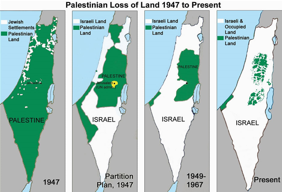 Palestinci se prikazuju kao stanovnici Zapadne obale i Pojasa Gaze, čime se briše ogromna većina Palestinaca koji žive u Izraelu ili izvan povijesne Palestine. Povijesno, zemljopisno i demografsko smanjenje stanovništva Palestine je bit kolonijalnog projekta, tj. maksimalno prisvajanje palestinskog teritorija, uz minimalnu prisutnost autohtonih stanovnika. Drugim riječima: protjerivanje Palestinaca ili segregacija, i zato se Oslo može smatrati kao platforma za nestanak Palestine ili njeno sužavanje na male enklave, što je s druge strane u konačnici rezultiralo stvaranjem gotovo etnički čistog Velikog Izraela čijem se širenju ne nazire kraj.