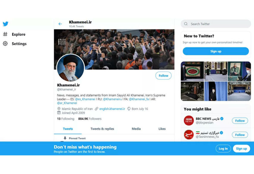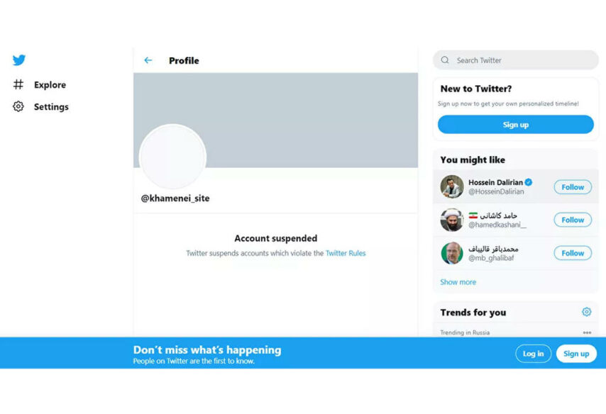 Jednom od iranskih vrhovnih vođa Alija Hameneija, na Twitteru poznat kao @khamenei_site, također je suspendiran korisnički račun na Twitteru. Razlog suspenzije računa bila je sporna fotografija na kojoj se vidi Donald Trump kako igra golf i bespilotna letjelica koja nosi bombu i koja se sprema ”osvetiti smrt generala Soleimanija,” zapovjednika iranske elitne postrojbe.