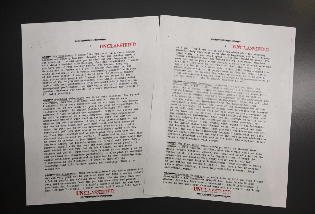 Ali u spornoj konverzaciji sam Donald trump upućuje predsjednika Ukrajine Vladimira Zelenskog da dokumente koji kompromitiraju Joa Bidena, njegovog potencijalnog predsjedničkog protukandidata, proslijedi američkom pravosuđu, a ne njegovom uredu ili njemu odanim ljudima u Republikanskoj stranci. Ovdje bi priča trebala završiti, ali nije. Osim toga, nakon što je Pelosi digla buku, Trump je naredio da se s razgovora skine oznaka tajnosti i da se sadržaj prezentira institucijama i javnosti.