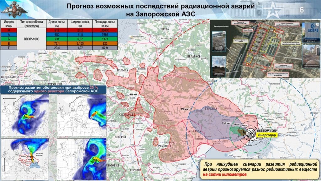 U odvojenom saopštenju u četvrtak, Igor Kirilov, koji je na čelu ruskih trupa za nuklearnu biologiju i hemijsku odbranu, rekao je da je njegova uprava modelirala moguće scenarije za katastrofu u fabrici u Zaporožju. Obuh radioaktivnih materijala s lokacije mogao bi stići do Poljske, Slovačke i Njemačke, upozorio je on.