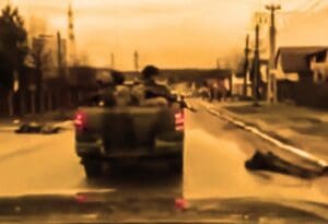 Ukrajinci su objavili video snimke njihovih vozila kako prolaze kroz Buchu i druga predgrađa, gdje se vide „mrtvaci“ koji leže okolo razbacani po cesti, navodno ubijeni od Rusa. Međutim pažljivim gledanjem, možemo vidjeti kako jedan od tih „mrtvaca“ miče ruku dok vozilo prolazi, a onda, kad prođe, smatra da je njegov posao završen i USTAJE SE! Ovo ustajanje možete vidjeti ako pažljivo gledate u retrovizor vozila.
