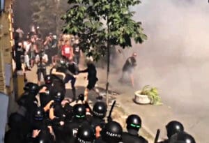 Policija je priopćila da su sukobi izbili nakon što su nacionalisti odbili podvrgnuti provjerama zabranjenih predmeta i pokušali nasilno ući u predsjednikov ured. Prosvjednici su bacali baklje i cigle s pločnika na policajce u punoj opremi za nerede, a pritom su koristili i nešto što je izgledalo kao suzavac.