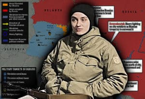 Želim da vam pokažem lažnu kartu borbe koja je reprezentativna za dezinformacije koje se daju lakovjernoj publici u Americi i Evropi. Ovu mapu je objavila šašava djevojka, Ashley Cornell, koja odaje svoje neznanje o vojnoj situaciji i nije uspjela provjeriti divlje tvrdnje “ratnog stručnjaka” Justina Bronka :