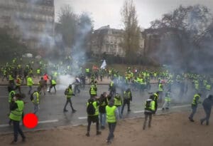 Francuzi svoj politički stav pokazuju stavljanjem reflektirajućih prsluka ispod vjetrobranskog stakla na svojim automobilima. Takvih je oko 20-30 posto. Mogu se vidjeti i transparenti s natpisom Macron:Demission ou execution što govori o rušilačkom potencijalu prosvjednika. Sama cijena goriva može biti samo povod. U F je ona 1,65 eura a u Španjolskoj 1,20. No,u Portugalu je 1,45 što je više nego u F s obzirom na kupovnu moć pa prosvjeda nema.