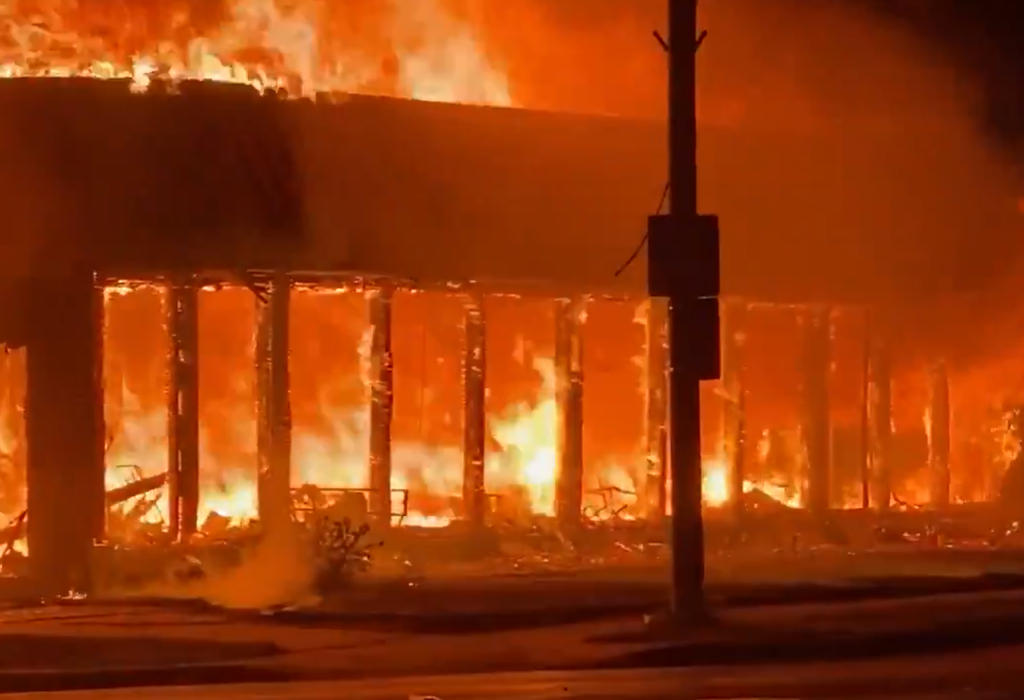 A closer look at just one of the buildings (the local furniture store) currently up in flames in Kenosha tonight: pic.twitter.com/2EvasISbN1