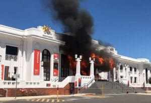Šteta od požara može se vidjeti na ovim slikama koje je grad Cape Town objavio: Kao što smo već spomenuli, u glavnom gradu Australije, također je zapaljena stara zgrada parlamenta. Paljenje su izvršili mnogobrojni prosvjednici protiv cijepljenja i koronafašističkih mjera. Radilo se većinom o Aboridžinskom narodu, koji su nakon paljenja održali i ceremonijalni ples. Vikali su: „Nećemo više gledati kako odvodite i zatvarate našu braću!“. Osim toga tjerali su novinare i verbalno ih napadali, po našem mišljenju, sasvim opravdano. Australski novinari su tijekom pandemije služili kao propagandno krilo režima, isto kao i kod nas. Vrata zgrade su uništena od vatre, a unutrašnjost je uništena od vode iz automatskog protupožarnog sustava. Zgrada se neće moći koristiti tjednima.