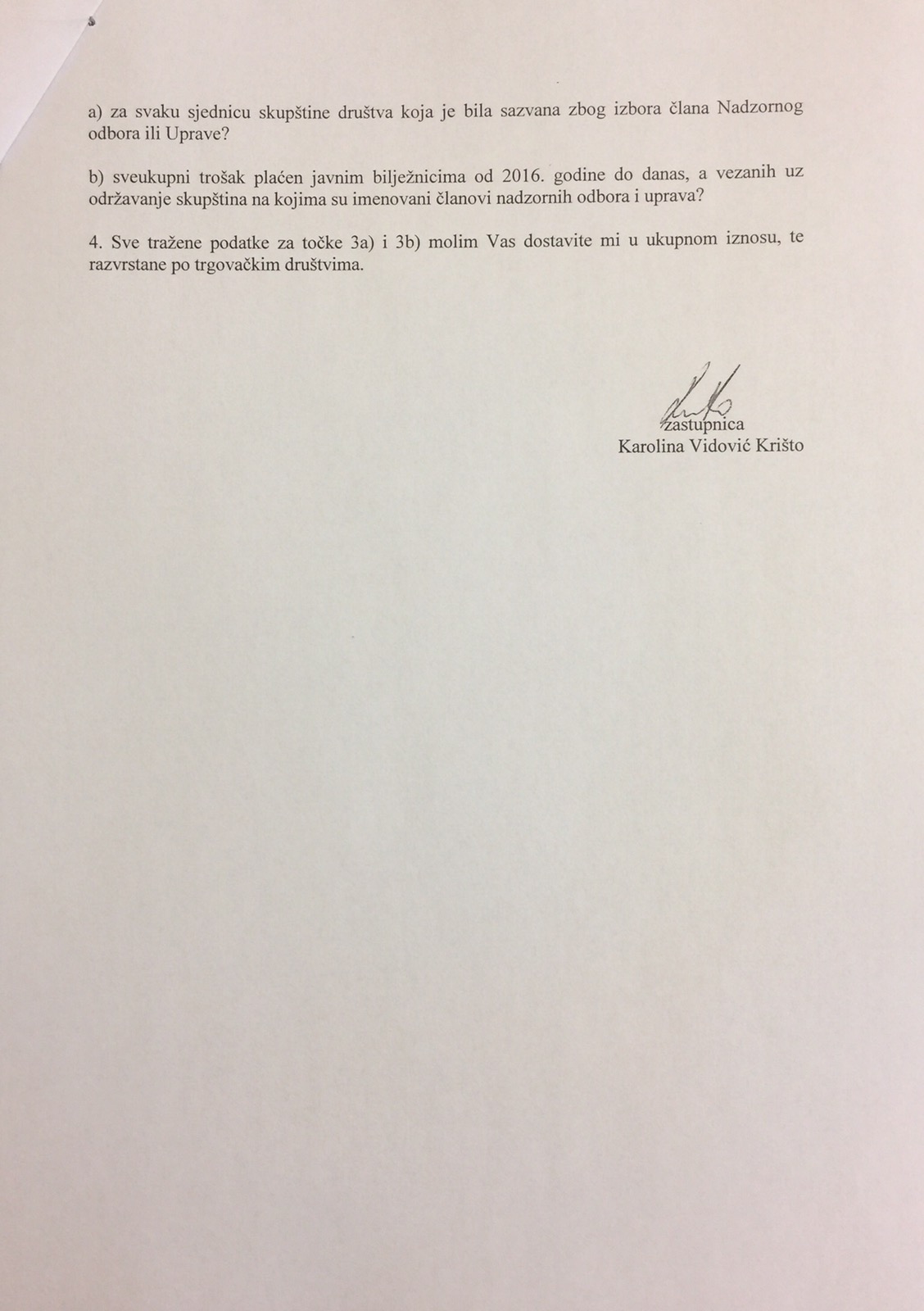 - 4. Sve tražene podatke za točke 3a) i 3b) molim Vas dostavite mi u ukupnom iznosu, te razvrstane po trgovačkim društvima.