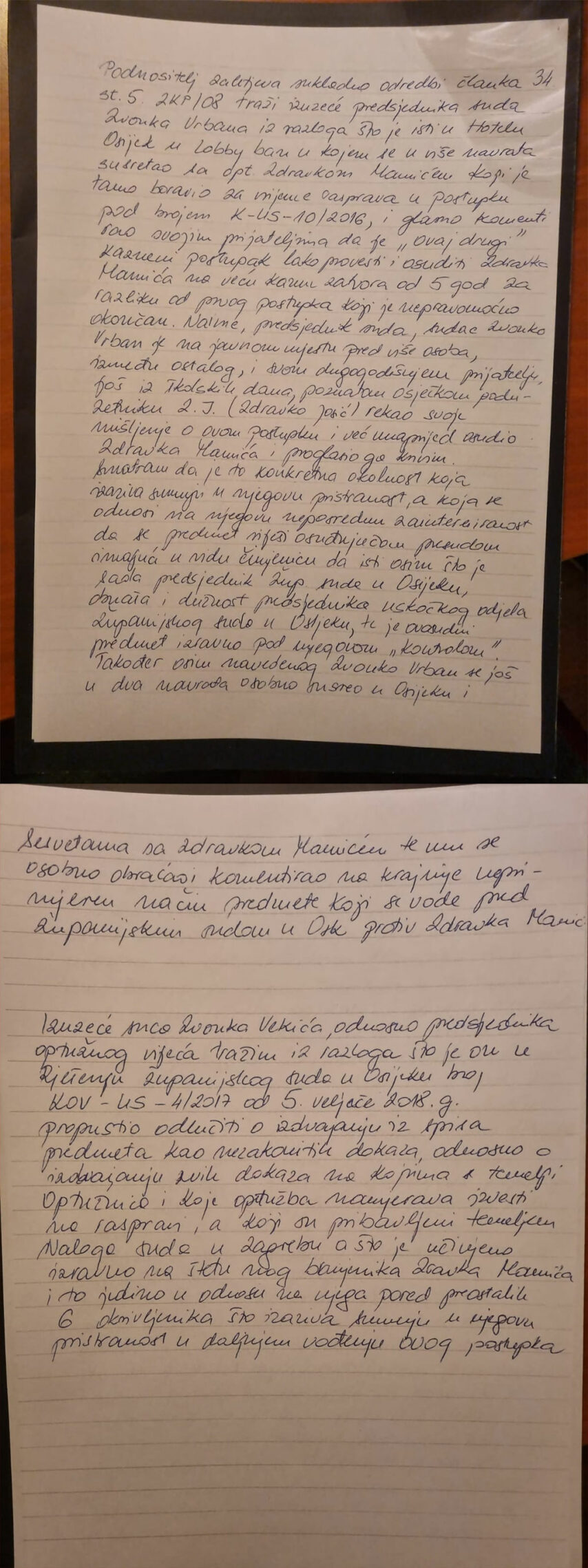 Zdravko Mamić piše jutros na svom profilu: “Ovog nema ni u filmovima! Da je hrvatska zemlja čudesnog krivosuđa govori i slučaj u kojem je sudac Vekić u sklopu teniskog paketa koji se sastojao od primanja novca, putovanja u Dubai, cipelica i drugih stvari koje su mu činile život ljepšim meni kao okrivljeniku dostavio upute kako da tražim izuzeće predsjednika suda Fruteka Vrbana i njega samoga. To je kao da vuk Crvenkapici dostavi razloge zašto da ne nosi baki kolače, iako je želi pojesti. Zahvaljujući informacijama koje mi dostavljate doznao sam da razlozi koje je diktirao i dostavio nisu napisani njegovom rukom, već ženskom. Što mislite kojoj dami iz kruga Vuitton Vekića pripada krasopis?”