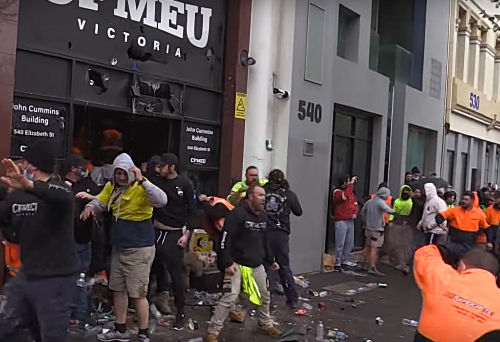 Kaos u Australiji dok građevinski radnici nasilno prosvjeduju protiv mandata cjepiva izvan sjedišta sindikata