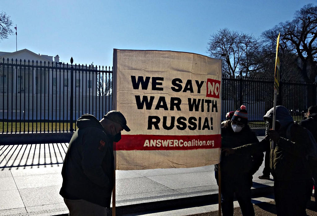 Mirovni aktivisti protestuju ispred Bijele kuće za „rasformiranje NATO“