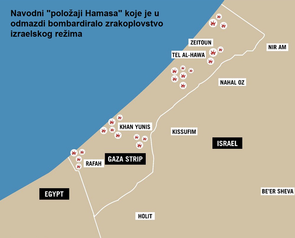 Izraelski je režim odmah za napad okrivio pokret otpora Hamas, a potom bombardirao njegove položaje i stambena područja u priobalnoj palestinskoj enklavi, de facto najvećem koncentracijskom logoru na svijetu.