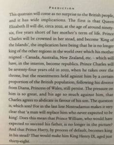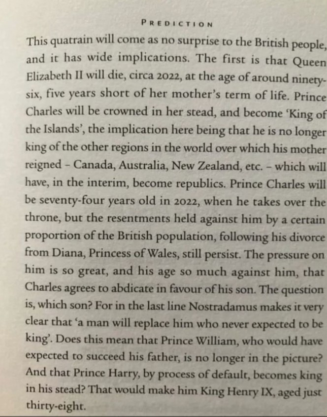 evo malo kopiram da vidite kako se sve uznemirilo: Znamo da postoji goruće pitanje koje želiš postaviti,. Molim, samo naprijed. : Hvala vam. Već stižu e-poruke u kojima se pita jesu li duge koje su se pojavile nad dvorcem Windsor i Buckinghamskom palačom netom nakon kraljičine smrti znak na nebu o kojem ste govorili? : I odmah bismo odgovorili… ne. : Malo čudno. Ipak, pomalo slučajno. : Duge su lom svjetlosti… Svjetlost je uvijek tu. Iako tvrdimo da ove šarene vrpce nisu znak o kojem govorimo, nismo rekli da su se ‘jednostavno pojavile’ … bez razloga. Rekli bismo da će smrt ovog monarha donijeti veliku promjenu u pogledu na vaš svijet. Duge su simbol nade. One unose radost u srce i smatralo se potrebnim prikazati takav ‘prikaz’. : Zanimljivo je kako će se njihov značaj razlikovati ovisno o nečijem pogledu na Monarhiju! : Doista, . Mnogo toga se treba razotkriti.… Čitaj više »
