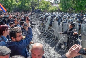 Pašinjan naglašava da je protiv nasilnog svrgavanja vlasti i da sve akcije prosvjednika trebaju biti “mirne”. Međutim, praksa pokazuje drugo.