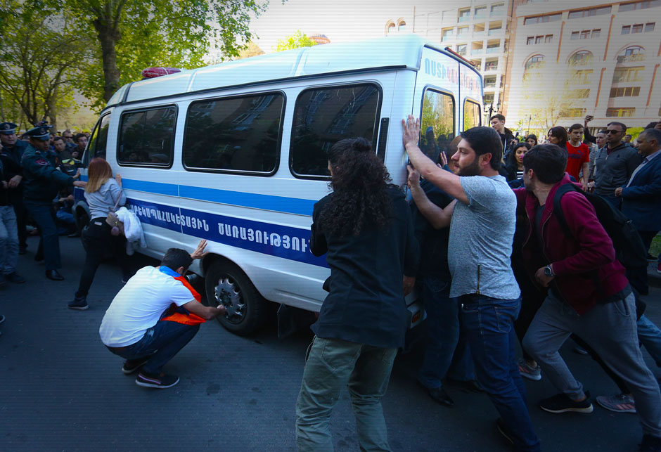 Međutim, Pašinjanove pristaše nisu žurile s prekidom nasilnih akcija. Rano ujutro su prosvjednici blokirali promet na željeznici Gjumri-Erevan, što je trajalo cijeli dan. Zbog toga je bio paraliziran cijeli željeznički promet u zemlji.
