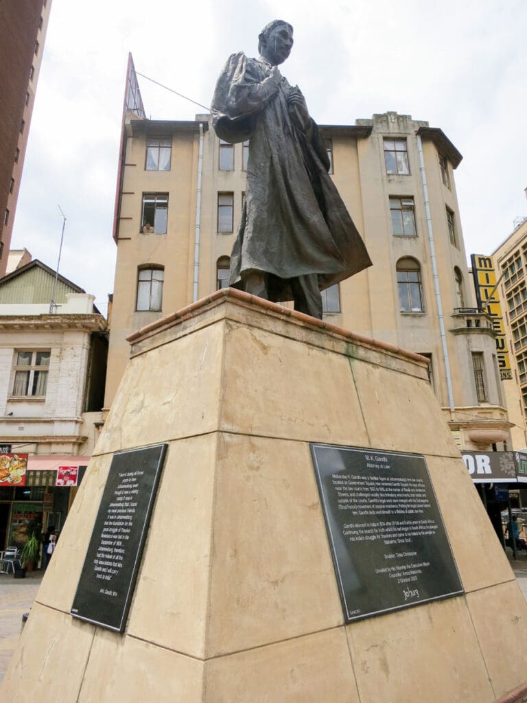 Kip u središtu Johannesburga je bio išaran bijelom bojom još 2015. godine, na kraju događaja na kojem su sudjelovali aktivisti Afričkog nacionalnog kongresa, kojeg je Mandela osnovao završetkom aparthejda i koji je vodio zemlju. Za tu prigodu je pokrenut i hashtag na Twitteru, #Gandhimustfall, ”Gandhi mora pasti”.
